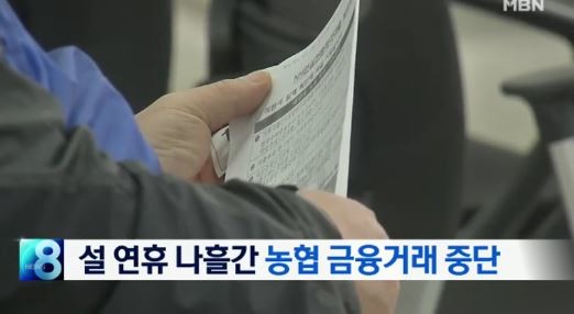 이번 설 연휴 기간 농협의 전산시스템 작업으로 인해 농협과 축협, NH농협은행 계좌를 이용한 모든 금융 거래가 일시적으로 중단되는 것.