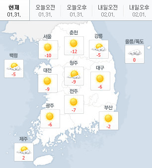 기상청에 따르면 31일은 중국 북부지방에서 남하하는 찬 대륙고기압의 영향으로 전국에 가끔 구름이 많다가 낮부터 차차 맑은 날씨를 보일 것으로 예상된다.