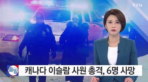29일(현지시간) 캐나다 동부 퀘벡주 퀘벡시의 이슬람 사원(모스크)에서 예배중이던 신도들을 향해 괴한들이 총기를 난사해 6명이 숨지고 17명이 다쳤다.