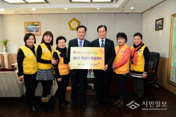 구의회에 따르면 이날 강대호 의장은 구의회를 방문한 대한적십자사 서울시지사 제타룡 회장과 적십자 봉사원들에게 특별회비를 전달한 후 회비모금 및 대한적십자사 사업의 발전방향에 대한 간담회를 진행했다.