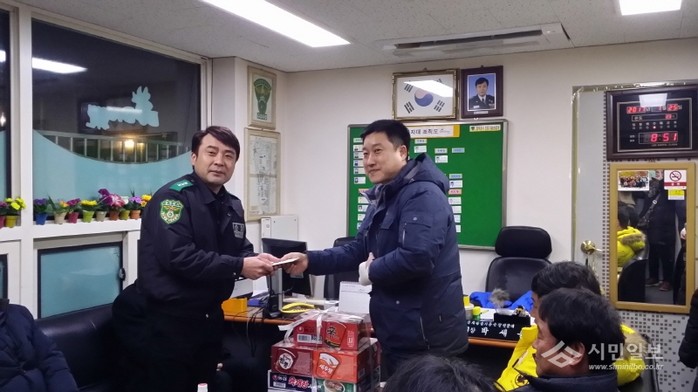 방범초소에 위문품 전달