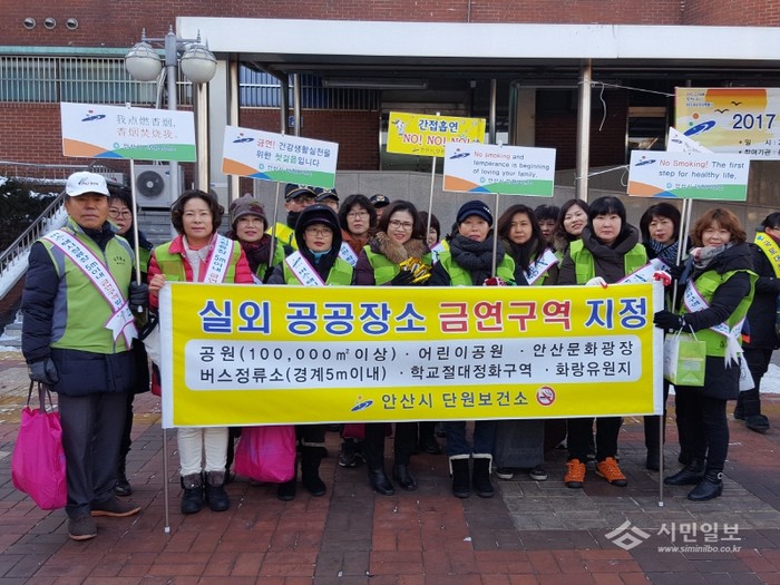 최근 경기 안산시 단원보건소가 코레일 안산역, 원곡본동 주민센터 등의 유관기관과 함께 안산역· 주변 버스·택시정류소 등을 이용하는 시민에게 ‘금연·절주·암예방 캠페인’을 실시했다. 사진은 참여자들이 기념촬영하는 모습. (사진제공=안산시청)
