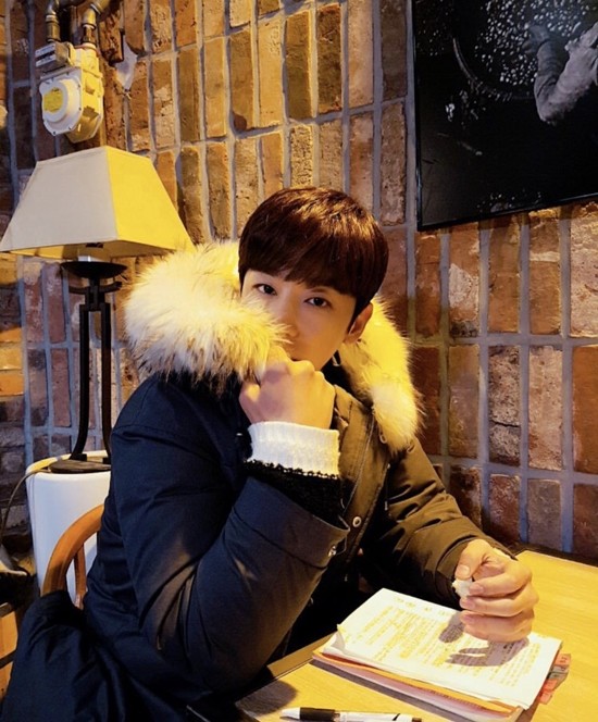 사진 속 김지한은 특유의 부드러운 눈빛으로 카메라를 응시하고 있다. 특히 '열공' 흔적이 돋보이는 대본이 시선을 사로잡았다.
