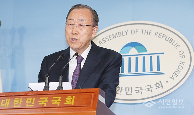 반기문 전 유엔사무총장이 1일 오후 서울 여의도 국회 정론관에서 대선 불출마 기자회견을 하고 있다. 반 전 총장은 “(정치권의)일부 구태의연하고 편협한 이기주의적 태도에 지극히 실망했다”고 비판했다.