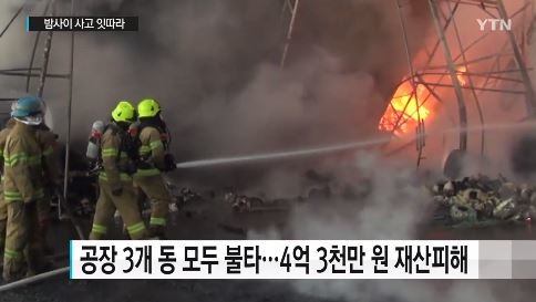 이로 인해 건물 3동과 집기류 등이 불에 탔으며, 소방서 추산 4억 3천만원의 재산 피해가 발생한 것으로 알려졌다.