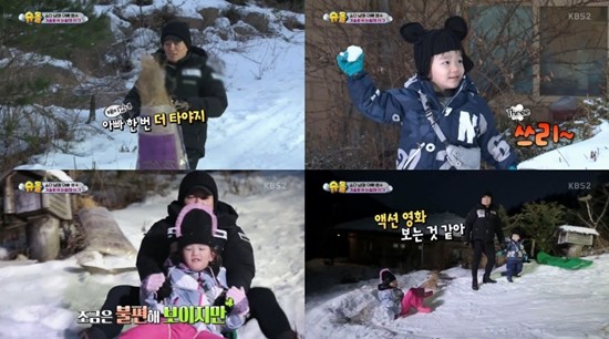 5일 오후 방송된 KBS2 예능프로그램 '해피선데이- 슈퍼맨이 돌아왔다'(이하 '슈퍼맨')에서는 썰매타기에 도전한 이범수와 소다남매의 모습이 그려졌다.