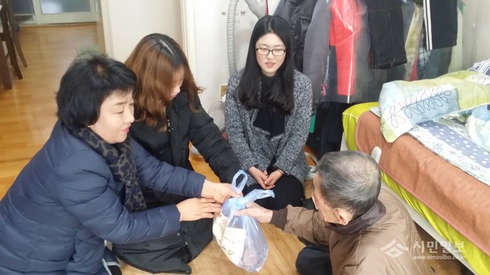 지난 3일 경기 동두천시 불현동 행정복지센터와 지역사회보장협의체가 함께 지역내 복지사각지대 10가구를 대상으로 ‘복지사각지대 합동 가정방문’을 실시했다. 사진은 관계자들이 한 가정을 방문해 사전에 준비한 성품을 전달하고 있는 모습.(사진제공=동두천시)