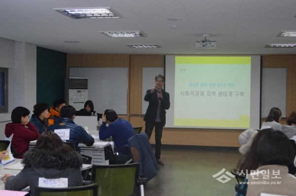 최근 금천구는 지역혁신과와 기획예산과 및 동 주민센터 직원들 28명을 대상으로 ‘2017 금천구 혁신 & 협치 워크숍’을 개최했다. 사진은 워크숍에서 희망제작소 권기태 부소장이 강의를 진행하는 모습.(사진제공=금천구청)