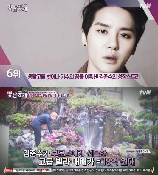 6위에 오른 주인공은 김준수. 그는 가족 네 명과 함께 단칸방에 살 정도로 어려운 환경에서 지내왔다. 어려운 가정환경을 딛고 데뷔한 후 가수로서 승승장구하며 엄청난 공연 수익과 음원 수익을 올리고 있으며 뮤지컬에서도 새로운 황태자로 티켓파워를 자랑하고 있다.