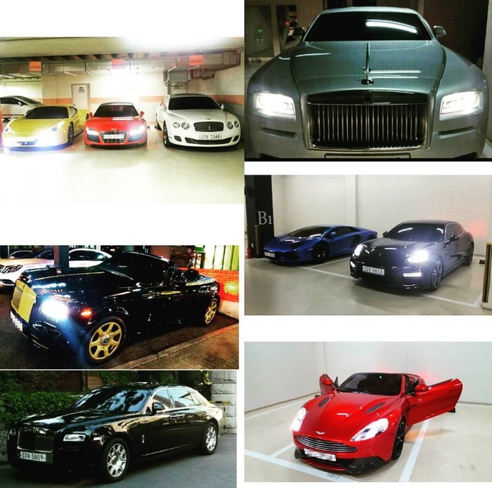 사진 속에는 그가 소유한 초고가 외제차량이 주차장에 늘어서 있었다.
