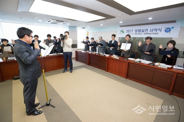 최근 서울 은평구는 직무를 수행함에 있어 법과 원칙을 준수하고 부패를 용납하지 않는 자세로 임하겠다는 내용의 ‘공무원 청렴실천 서약식’을 개최했다. 사진은 김우영 구청장(오른쪽 세 번째) 등 관계자들이 서약하고 있는 모습.(사진제공=은평구청)