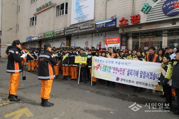 관악소방서는 지난 7일 봉천중부시장, 중앙시장 등 전통시장 4곳에서 시민 및 생계형 단독 점포주를 대상으로 찾아가는 맞춤형 소방안전교육과 화재예방 캠페인을 실시했다.(사진제공=관악소방서)
