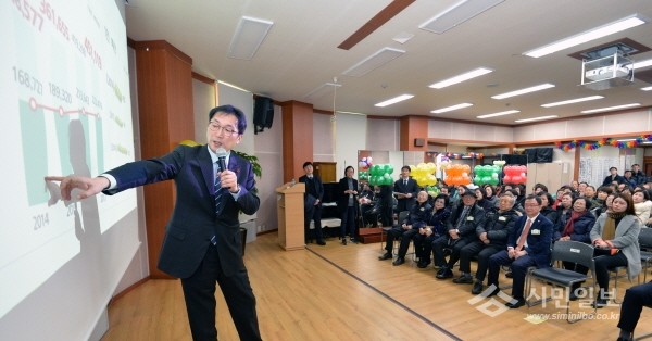 | ▲ 2017년 동 업무보고회에서 이창우 구청장이 올해 주요추진 계획에 대해 설명하고 있다. | ||