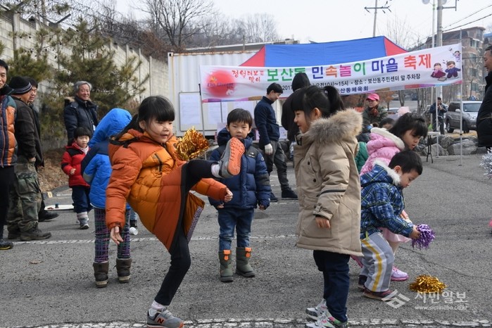경기 동두천시 보산동에서는 지난 8일 주민센터 주차장에서 보산동 체육회 주관으로 '2017년 정월대보름맞이 민속놀이 마을 축제'를 개최했다. 사진은 어린이들이 즐겁게 제기차기를 하는 모습.(사진제공=동두천시청)