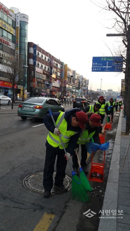 제종길 경기 안산시장은 지난 8일 오전 환경미화원·주민자치위원 등 본오3동 유관단체, 생활폐기물 수집·운반 대행업체 대표 등의 주민 30명과 함께 상록수역 주변 주요 도로변 청소를 실시했다.(사진제공=안산시청)