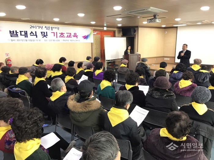 인천 계양구노인복지관은 지난 10일 복지관 신관 3층 소강당에서 60여명의 청춘봉사단원을 대상으로 발대식 및 기초교육을 진행했다. 사진은 복지관장이 인사말을 하는 모습.(사진제공=계양구청)