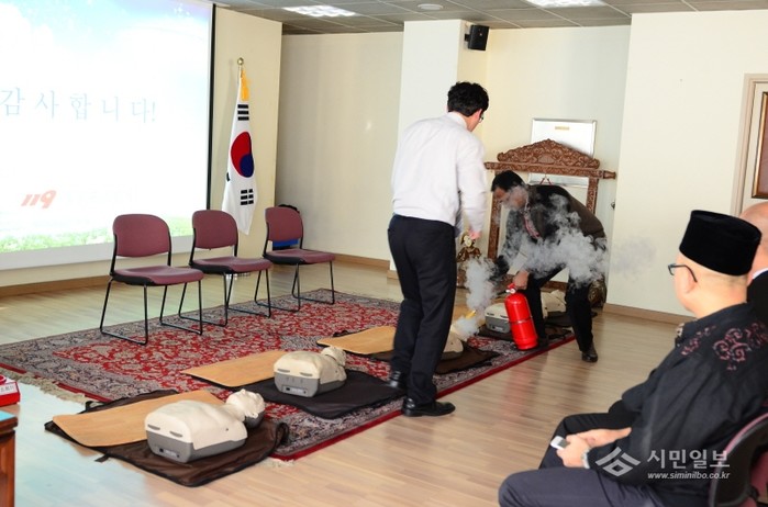지난 10일 서울 영등포소방서는 여의도동에 위치한 주한인도네시아 대사관에서 '다문화 외국인 시민안전파수꾼 양성 소방안전교육'을 실시했다. 사진은 참여자들이 소화기 사용 실습을 하는 모습.(사진제공=영등포소방서)
