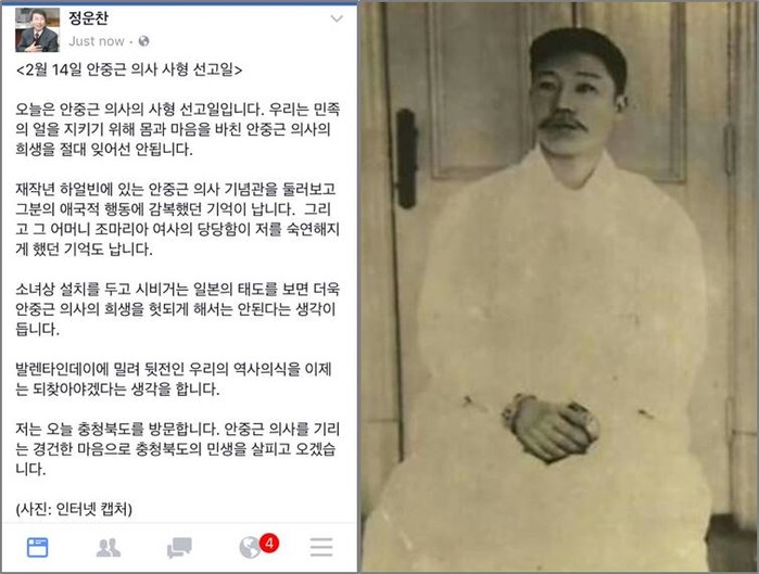 특히, 정운찬 이사장은 자신의 SNS를 통해 “오늘은 안중근 의사의 사형 선고일입니다. 우리는 민족의 얼을 지키기 위해 몸과 마음을 바친 안중근 의사의 희생을 절대 잊어선 안됩니다“라는 글과 함께 안중근 의사의 사진을 올려 이목을 집중시켰다.