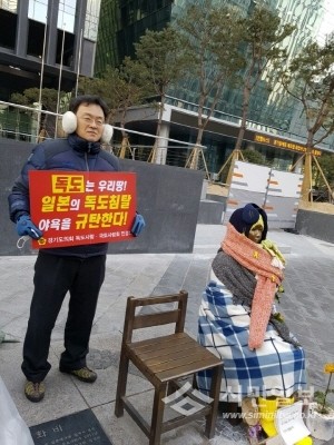 [수원=채종수 기자]경기도의회 의원들이 강추위 속에서도 일본의 독도 침탈 저지를 위한 피켓시위에 나섰다.
