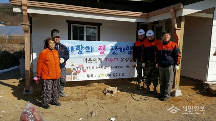 최근 경기 양평군 지평면 행복돌봄추진단은 송현리에 거주하는 홀몸노인의 집에 방문해 강설로 인해 무너진 보일러실 천장을 수리하는 등의 집수리 봉사활동을 실시했다. 사진은 관계자들이 집수리 후 기념촬영하는 모습.(사진제공=양평군청)