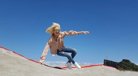 공개된 사진 속에는 선글라스를 낀 채 해맑게 웃으며 날아오르는 포즈를 취하고 있는 안지영의 모습이 담겨있다.