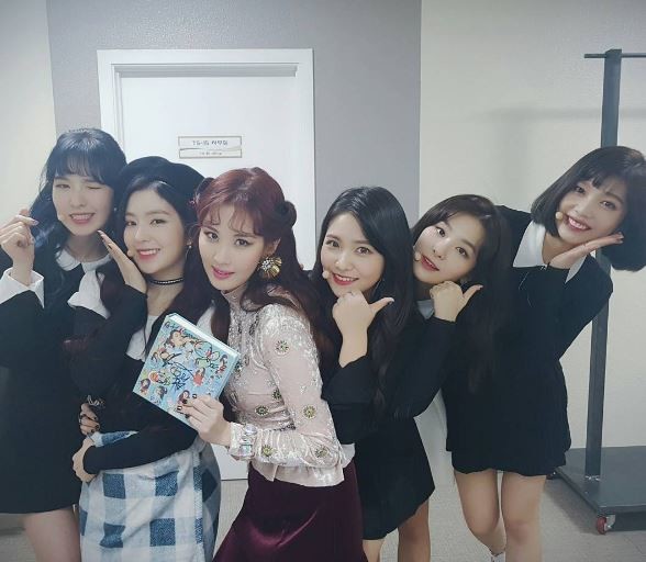 게재된 사진 속 그는 레드벨벳의 멤버들과 발랄한 표정을 지으며 카메라를 응시하고 있으며 모두 물오른 외모를 자랑하고 있어 눈길을 끌었다.