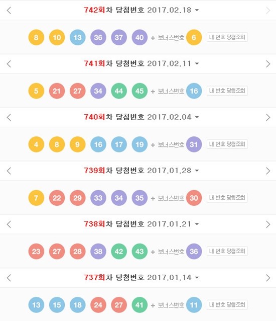 지난 18일 나눔로또에 따르면 '제742회 로또 당첨번호'는 8 10 13 36 37 40 보너스번호 6으로 발표됐으며 연속 숫자 36과 37이 눈에 띈다.