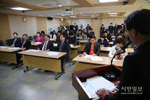 | ▲ 수원시의회 세미나실에서 수원군공항 예비이전후보지 선정 관련 긴급설명회를 하는 모습. | ||