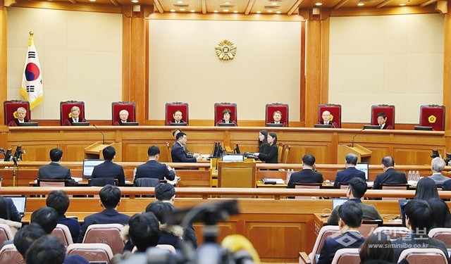 20일 오전 서울 종로구 재동 헌법재판소 대심판정에서 ‘탄핵 심판’ 15차 변론이 열리고 있다. 헌재는 이날 변론에서 “최종 변론기일을 24일에서 3월2일 혹은 3일로 다시 지정해달라”는 대통령 측 요구를 심리한다.