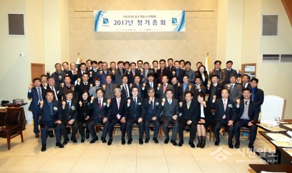 지난 20일 경기도의회 정기열 의장은 경기 안양시 동안구에서 개최된 '경기도 중소기업 CEO 연합회' 2017년 정기총회에 참석해 경기행복시대를 열어가는 데 함께해달라며 축하의 말을 전했다. 사진은 이날 열린 정기총회 참석자들의 기념촬영 모습.(사진제공=경기도의회)