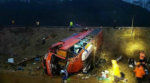 관광버스 내부에 있던 44명의 학생들은 중경상을 입고 인근 병원에서 치료를 받고 있지만, 운전자는 사망한 것으로 전해졌다.