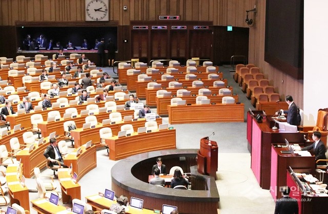 23일 오후 서울 여의도 국회에서 열린 본회의에서 정세균 의장이 개회 선언을 하고 있다.