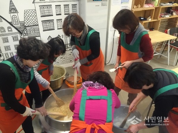 최근 서울 성동구 행당2동 지역사회보장협의체는 식사가 어려운 지역내 저소득 홀몸노인과 중증장애인들을 위해 맞춤형 건강식인 영양죽을 만들어 지원했다. 사진은 보장협의체 관계자들이 죽을 만들고 있는 모습.(사진제공=성동구청)