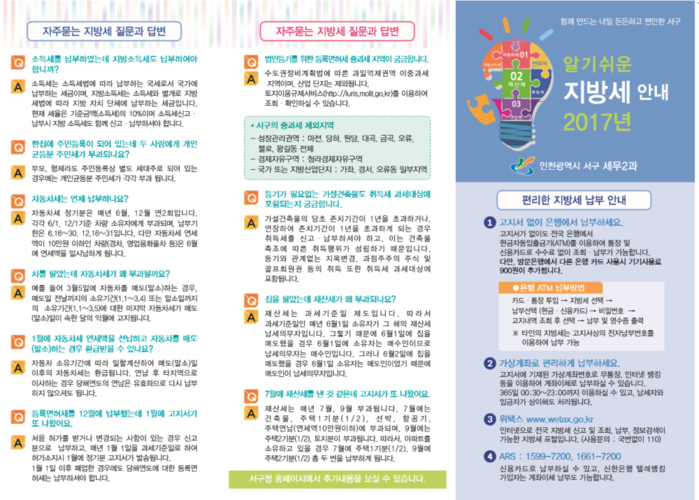 [인천=문찬식 기자]인천 서구가 구민들의 지방세 상식과 이해를 돕기 위해 납세자 중심 편의시책 추진에 나섰다.