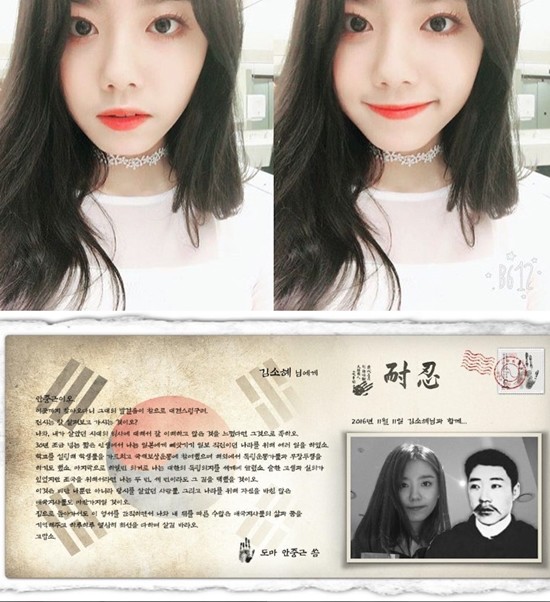 김소해가 올린 사진은 안중근 의사 기념관에서 찍을 수 있는 것으로 디지털 속으로 재현된 안중근 의사 옆에 김소혜의 얼굴이 담겨 있다.