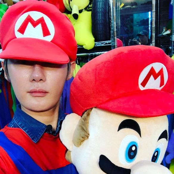 게재된 사진 속 그는 슈퍼마리오 캐릭터 인형과 함께 슈퍼마리오 의상을 입고 카메라를 응시하고 있어 이목을 집중시켰다.