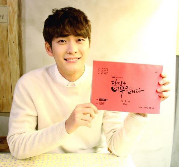 공개된 사진 속 강태오는 대본을 들고 환한 미소를 짓고 있다. 특히 그의 우월한 비주얼이 눈에 띈다.