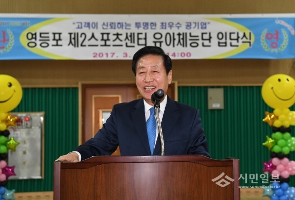 [시민일보=이진원 기자] 이용주 서울 영등포구의장은 최근 구 제2스포츠센터 5층 대체육관에 열린 '유아체능단 입단식'에 참석해 입단하는 어린이와 가족에게 축하인사를 전달했다.