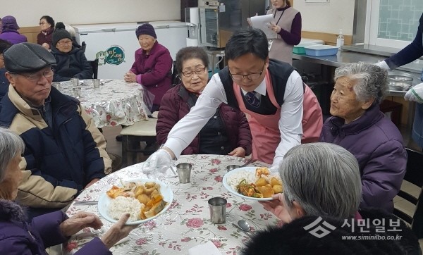 이날 이 의원은 경로식당을 찾은 노인들의 편안한 점심식사를 위해 음식 배식, 퇴식 및 잔반 처리, 식기 반납, 식탁 정리 등의 식사도우미 역할을 1시간여 동안 수행했다.