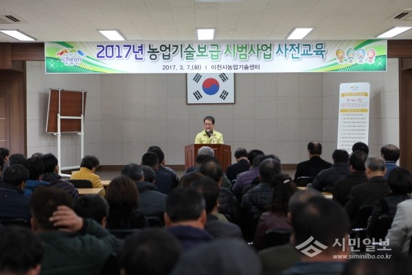 경기 이천시는 지난 7일 농업기술센터 대회의실에서 2017년 농업기술보급사업 선정농가 119명이 참석한 가운데 시범사업의 성공적인 추진을 위한 사전교육을 실시했다. 사진은 조병돈 시장이 인사말을 하는 모습.(사진제공=이천시청)