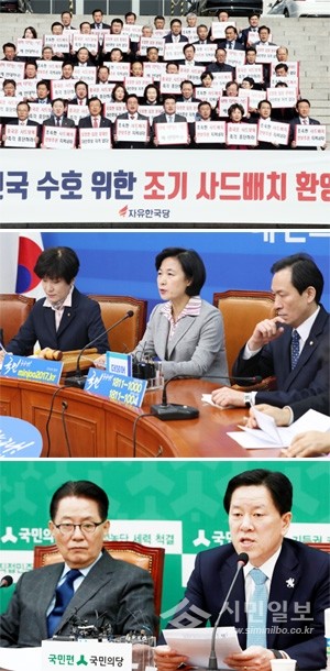 추 대표는 “사드 배치를 급작스럽게 당긴 것은 조기대선을 염두에 둔 대선용 배치이자 차기정권에서 논의조차 못하게 만들겠다는 알박기 배치”라고 말했다. 국민의당 주승용 원내대표(오른쪽)도가 8일 오전 국회 당 대표실에서 열린 최고위원회의에 참석해 발언하고 있다. 주 원내대표는 “정부와 국회를 배제한채 사드 배치를 군사작전하듯 속전속결 추진하는건 국민을 속이는 것”이라고 말했다.