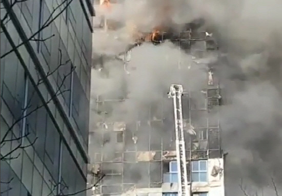 화재는 상암동 MBC 옆 DMC 푸르지오 시티 신축오피스텔 공사현장에서는 10일 오후 2시 40분쯤 시작됐다.