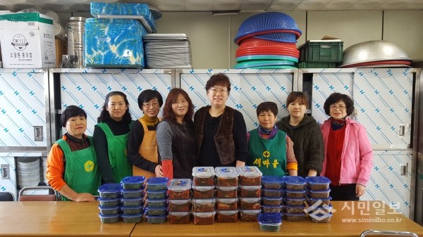 경기 수원시 팔달구 화서1동 새마을부녀회는 9일 새봄을 맞이해 지역내 어려운 이웃들에게 나눠 줄 반찬 만들기 행사를 진행했다. 사진은 부녀회 관계자들이 기념촬영을 하는 모습.(사진제공=수원시청)