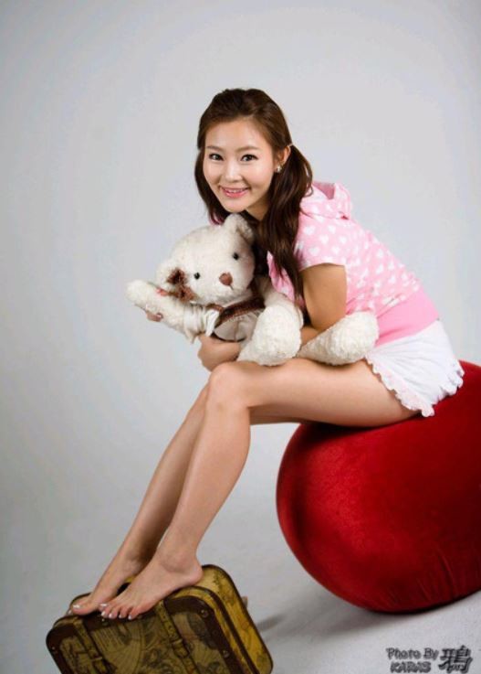 게재 된 사진속 지연수는 청순한 느낌의 갈래머리를 하고 빨간 쿠션의자에 곰돌이 인형을 안고 앉아 카메라를 해맑게 바라보고 있다.