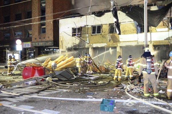 지난 11일 오후 11시14분경 서울 영등포구 가마산로(대림동) 소재 김모 상가건물에서 가스폭발로 추정되는 화재가 발생해 총 3명이 경상 피해를 입었고, 부동산 및 동산 등 약 2억원의 재산피해가 발생했다. 사진은 영등포소방서 관계자들이 화재진압을 하는 모습.(사진제공=영등포소방서)