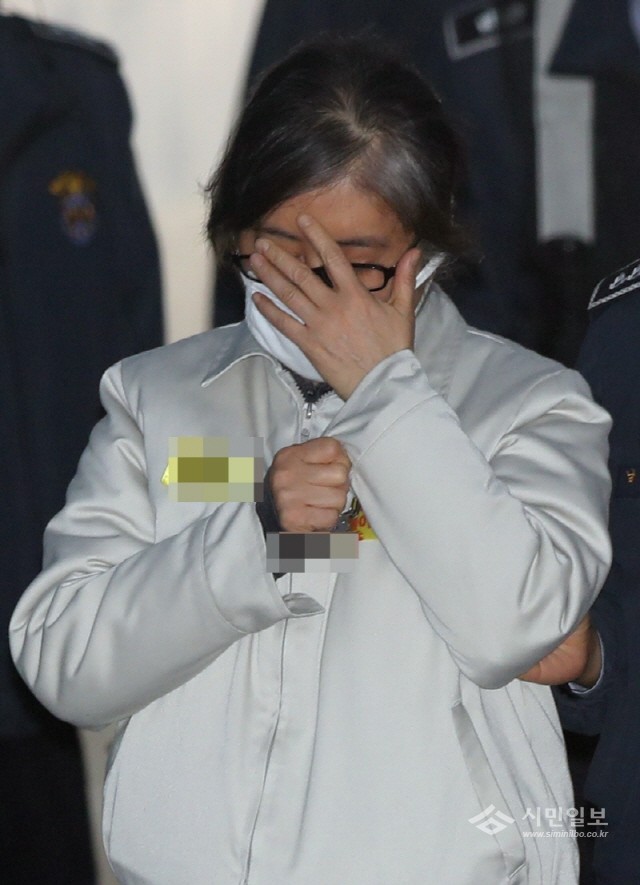 13일 오전 국정농단 사태로 법정에 선 '비선 실세' 최순실 씨가 서울 서초구 서울중앙지법에서 열린 속행공판에 출석하기 위해 호송차에서 내려 법정으로 향하고 있다.