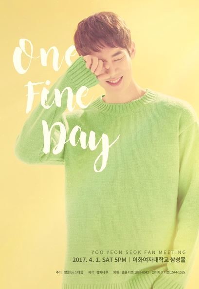 유연석의 국내 팬미팅은 오는 4월 1일오후 5시 이화여자대학교 삼성홀에서 ‘One Fine Day’라는 타이틀로 진행된다.