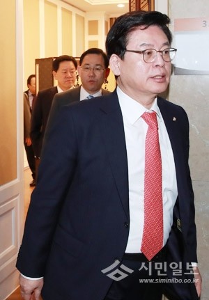자유한국당 정우택(오른쪽부터)·바른정당 주호영·국민의당 주승용 원내대표가 15일 오전 국회 귀빈식당에서 개헌안 관련 논의를 마친 뒤 떠나고 있다.