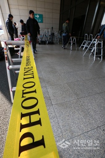 박근혜 전 대통령의 검찰소환일정이 결정된 15일 오후 서초구 서울중앙지검에서 사진기자들이 포토라인을 설치하고 있다.