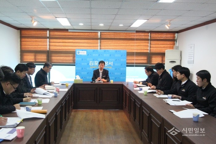 최근 경기 김포소방서는 소방서 소회의실에서 배명호 서장(가운데) 주재로 민원업무 담당자 등의 청렴 태스크포스(TF) 관계자가 참석한 가운데 ‘2017년 청렴문화 정착과 청렴시책 추진을 위한 TF팀 회의’를 개최했다.(사진제공=김포소방서)
